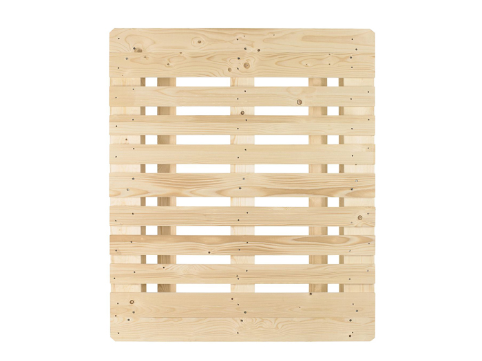 20世纪50年代以来,运输业的迅速发展,运输工具的大型化、高速化、使高效运输与一件在一件的低效率装卸成为运输包装过程中的突出矛盾。木托盘是解决这一矛盾的有效途径,在需要将货物进行搬运时,可以直接将木托盘与货物一同进行搬运,不用像传统的货物单件运输—样需要进行先卸下再装上的过程,极大的方便了货物的搬运。 用木托盘堆码货物,与叉车匹配,为物流效率化、低成本化开辟了广阔的前景;托盘一贯化包装运输,是物流企业降低成本、提高为客户服务水平的重要工具。欧标托盘系列CP 7号化工木托盘的规格为1300*1100*156㎜,整个托盘由22块优质松木板材和9个合成垫块通过96颗钉子严格按照CP托盘技术规范生产。 欧标系列CP 7号化工木托盘参数: ◆ 规格:1300×1100mm*156㎜; ◆ 自重:25±0.5kg; ◆ 载重:均匀负载动载1500kg,静载4000kg; ◆ 材料:符合欧标托盘制作标准的优质松木板材22块,木屑合成实木制作的脚块9只,64mm螺纹钉96颗; ◆ 工艺:按欧标托盘技术规范制作,与所有(传统的)标准物流装载工具、工业卡车和仓储系统兼容,主要用于运输袋装货物、纸箱和其他类型箱。 欧标系列CP7号化工木托盘的结构如下: ◆ 面板(两边与中间):1100×100×18=5块,1100×80×18=6块; ◆ 跳板:1300×125×22=2块,1300×100×22=1块; ◆ 脚墩:80×80×100=9块; ◆ 底板(竖着):1000×100×18=3块; ◆ 底板(横着):1200×80×18=5块。